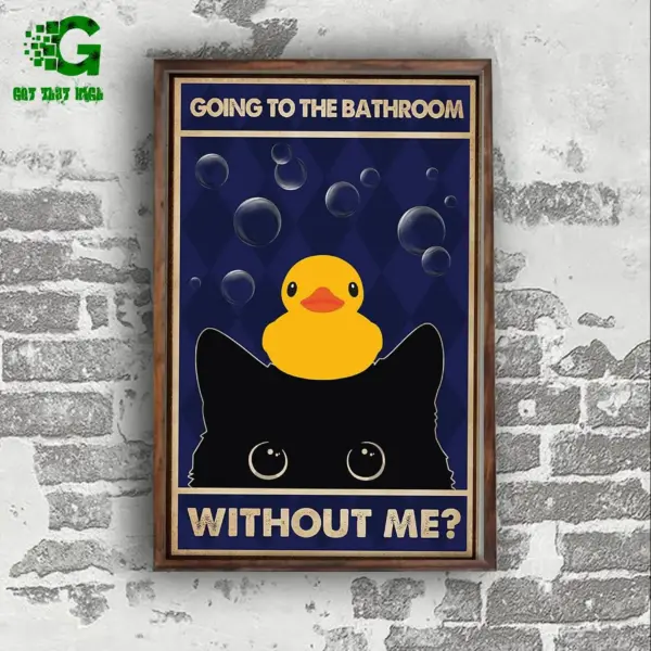 Black Cat Poster Cat Lover Cat Duck Going To The Bathroom Without Me Wall Art Home Decor Poster Print