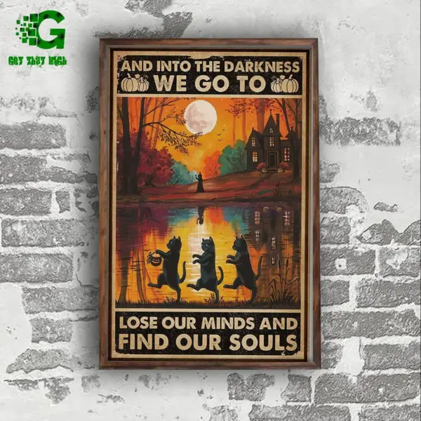 Black Cat Poster Cat Lover Cat Halloween And Into The Darkness We Go To Wall Art Home Decor Poster Print