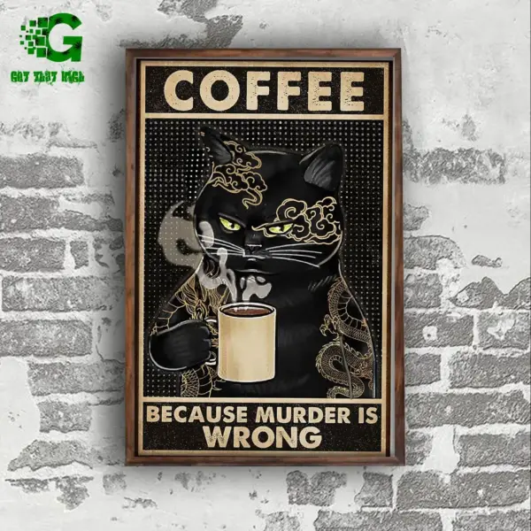 Black Cat Poster Cat Lover Coffee Because Murder Is Wrong Wall Art Home Decor Poster Print