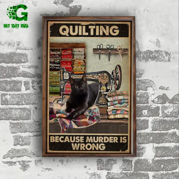 Black Cat Poster Cat Lover Lack Cat Retro Quilting Because Murder Is Wrong Wall Art Home Decor Poster Print