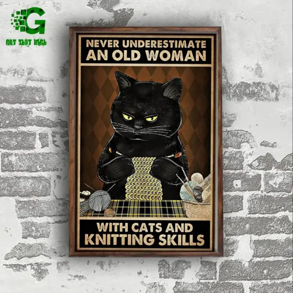 Black Cat Poster Cat Lover Never Underestimate Knitting Skills Wall Art Home Decor Poster Print