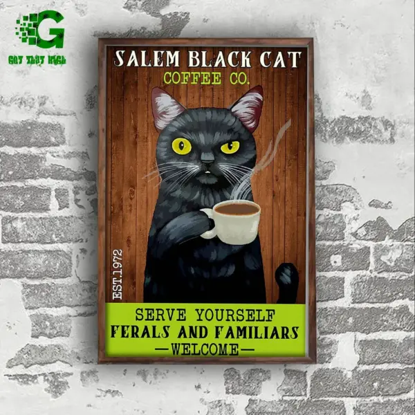 Black Cat Poster Cat Lover Salem Black Cat Coffee Wall Art Home Decor Poster Print