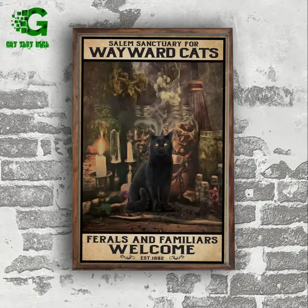 Black Cat Poster Cat Lover Salem Sanctuary For Way Ward Cats Wall Art Home Decor Poster Print