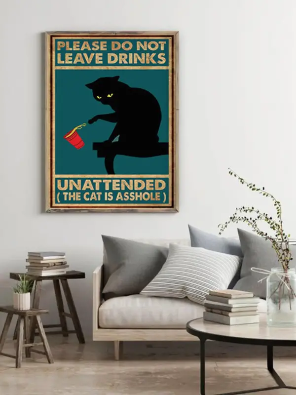 Black Cat Poster Cat Poster Cat Lovers Gift Cute Cat Best Gift Ever Drink Wine Poster Crazy Cat Black Cat With Teacups Hanging Cat