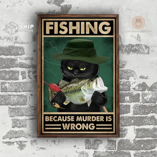 Black Cat Poster Fishing Fisher Gifts Fishing Because Murder Is Wrong Poster Home Living Decor Poster