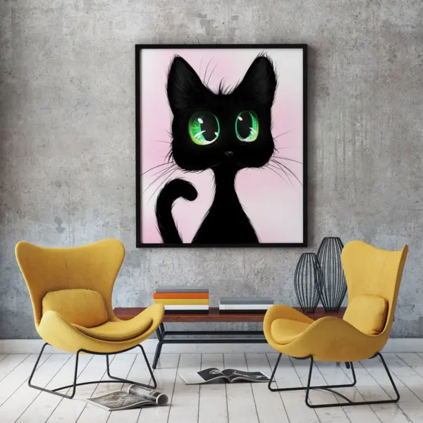 Black Cat Poster Green Eyes Cat Black Cat Halloween Wall Decor Cat Lover Wall Poster Black Cat Wall Art Funny Cat Art Printable