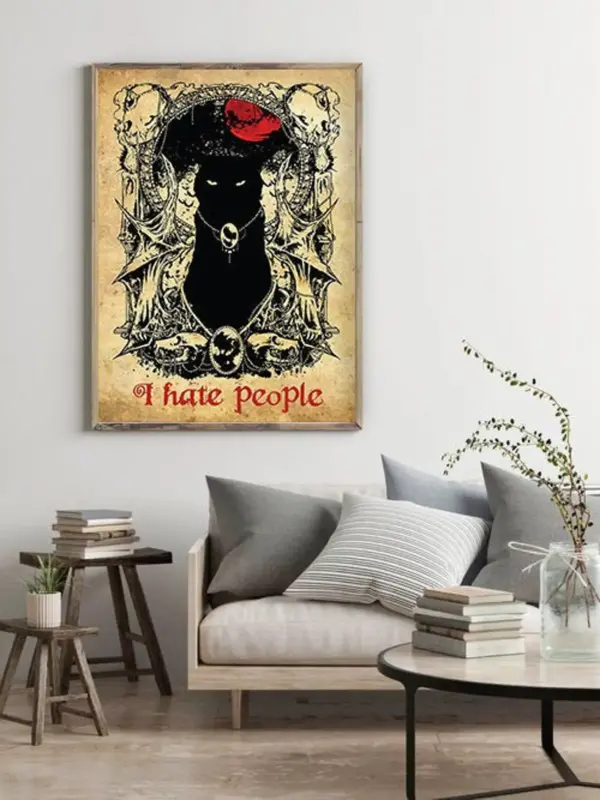 Black Cat Poster I Hate People Cat Wall Art Cat Lover Gift Hippie Poster Hippie Wall Decor Cute Cat Poster Best Gift Ever