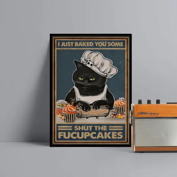 Black Cat Poster I Just Baked You Some Shut The Fucupcake Poster Cat Smoke Poster Funny Cat Canvas Print Cat Lover Gift Vintage Poster