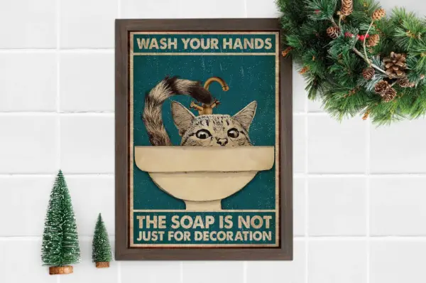 Black Cat Poster Please Wash Your Hands Poster Funny Cat Print Cat Lover Gift Bathroom Poster Wash Your Hands Signs Signs For Home