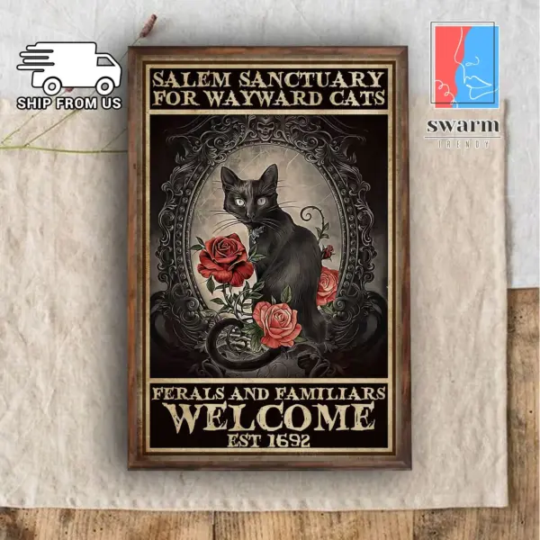 Black Cat Poster Salem Sanctuary For Wayward Cats Ferals And Familiars Welcome Poster Wicked Witch Living Decor Poster