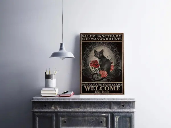 Black Cat Poster Salem Sanctuary For Wayward Cats Poster Salem Witch Poster Salem Sanctuary Witch Cat Poster Signs For Home