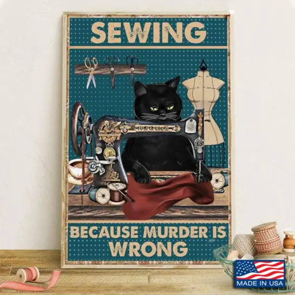 Black Cat Poster Sewing Because Murder Is Wrong Poster Black Cat And Sewing Poster Cat And Sewing Lover Poster No Frame