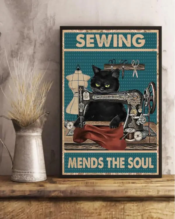 Black Cat Poster Sewing Mens The Soul Vertical Poster Cat Lover Cat Sewing Poster Sewing Machine Cutie Printed Poster Best Gift Ever
