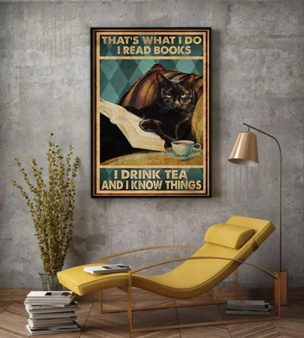 Black Cat Poster That S What I Do I Read Books I Drink Tea I Know Things Book Poster Tea Wall Art Drink Poster Home Decor