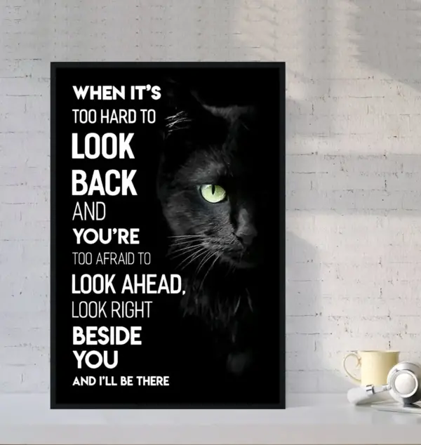 Heartwarming black cat poster with inspirational message about friendship and support. Perfect wall art for cat lovers and those seeking motivation in their living space.