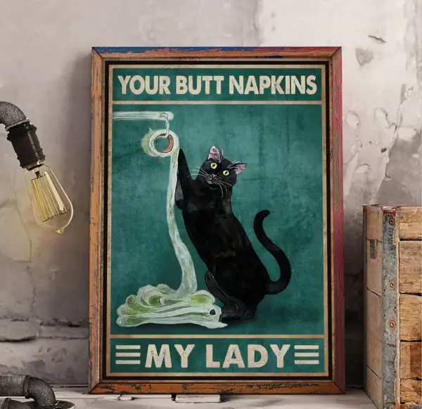 Retro Black Cat Poster - Funny Bathroom Wall Art