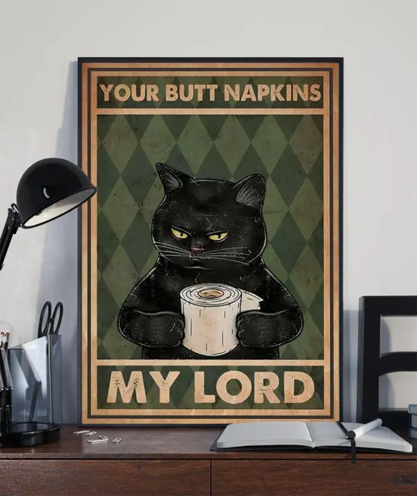 Black Cat Poster Your Butt Napkins My Lord Poster Cat Sign For Home Retro Cat Art Print Vintage Poster Bathroom Wall Art Funny Poster