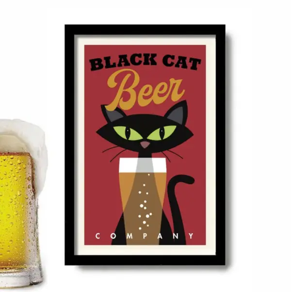 Black Cat Print Beer Lover Gift Wall Decor For Bar Beer Gift For Men Cat Owner Gift