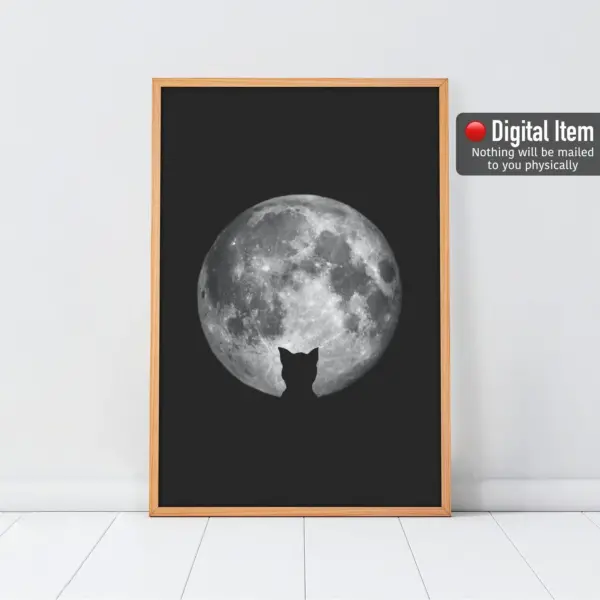 Black Cat Print Moon Wall Art Black Cat And Moon Print Space Room Decor Dark Wall Art Little Black Cat Art Cat Lover Gift