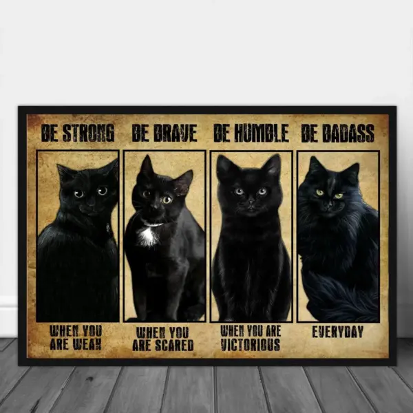 Black Cat Print Wall Art Cat Be Strong Be Brave Be Humble Be Badass Poster Cat Lover Gift Black Cat Portrait Black Cat Art Print