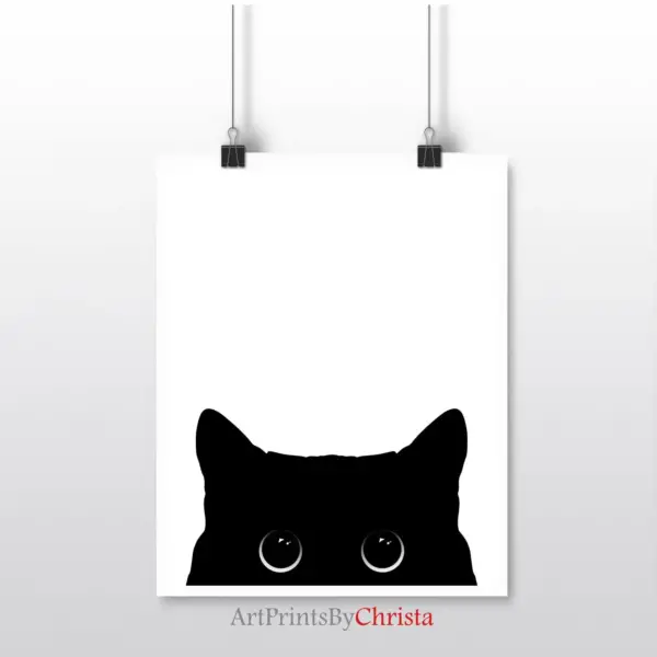 Black Cat Print Wall Art Poster Art Print Cat Print Wall Decor Wall Art Black Cat Peeking Cat Art Print Pet Printable Instant