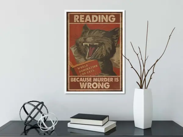 Black Cat Reading Because Murder Is Wrong Poster Reading Poster Book Lover Gift Murder Is Wrong Reading Wall Art Vintage Poster