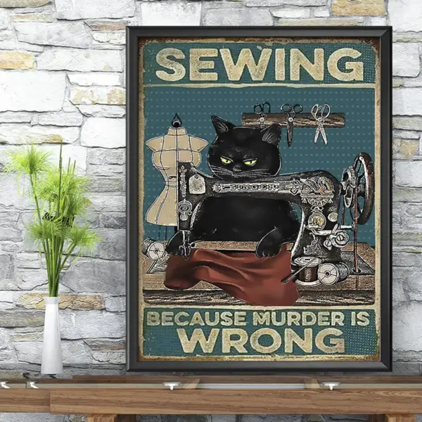 Black Cat Sewing Because Murder Is Wrong Poster Black Cat Poster Cat Vintage Poster Cat Lover Gift