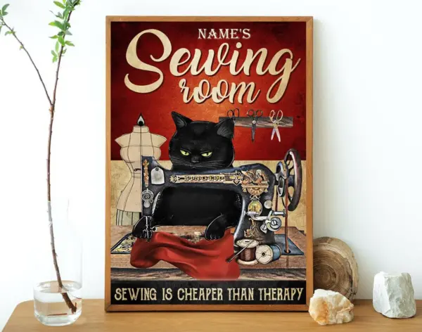Black Cat Sewing Room Personalize Vertical Poster Black Cat And Sewing Poster Cat And Sewing Lover Poster No Frame