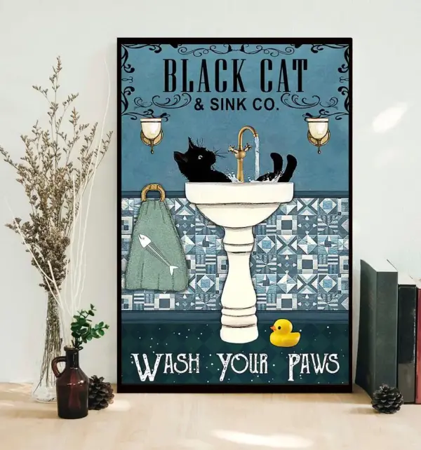 Black Cat Sink Co Wash Your Paws Poster Canvas