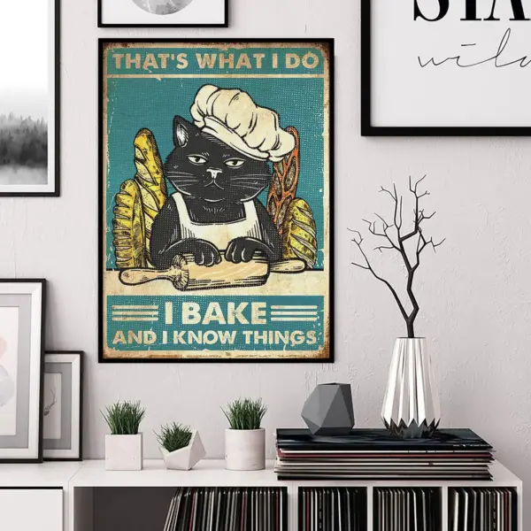 Black Cat That S What I Do I Bake And I Know Things Poster Funny Cats Poster Cat Art Print Vintage Cat Poster Bake Lovers Canvas Print