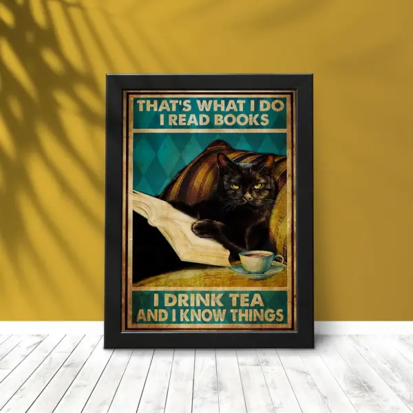 Black Cat That S What I Do I Read Book I Drink Tea And I Know Things Poster Cat Artwork Book Posters Black Cat Wall Art Cat Lover Gift