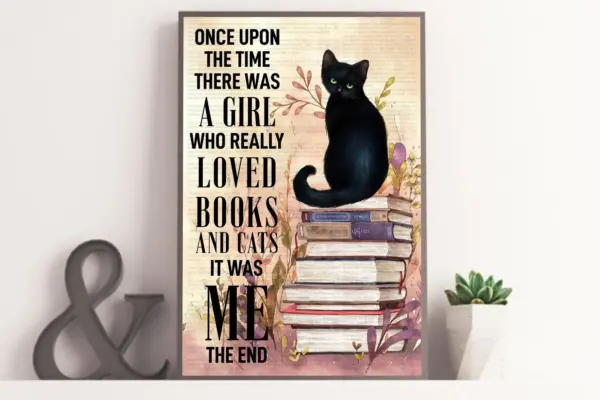 Black Cat The Time There Was A Girl Who Really Loved Books And Cat Poster Once Upon A Time There Was A Girl Poster Canvas