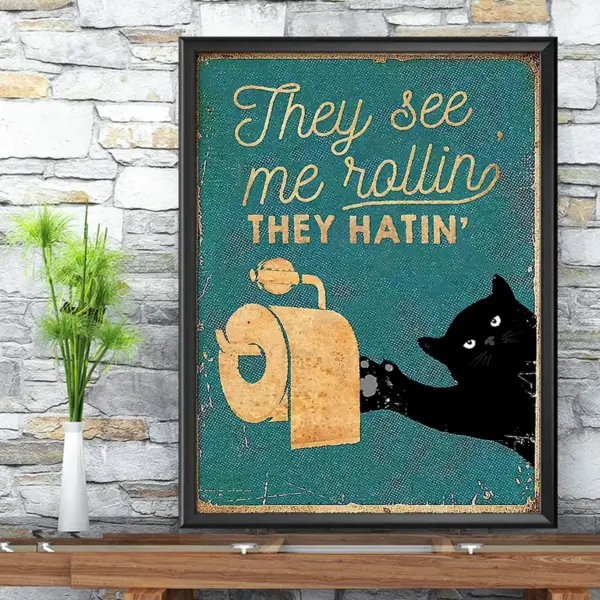 Black Cat They See Me Rolling They Hatin Poster Black Cat Poster Cat Vintage Poster Cat Lover Gift