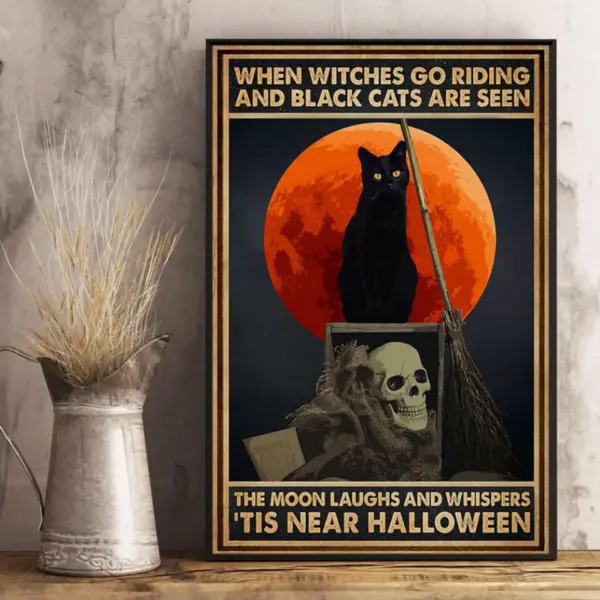 Black Cat Tis Near Halloween Poster When Withches Go Riding And Black Cats Are Seen Poster Home Decor Wall Decor Poster Framed Matte Canvas
