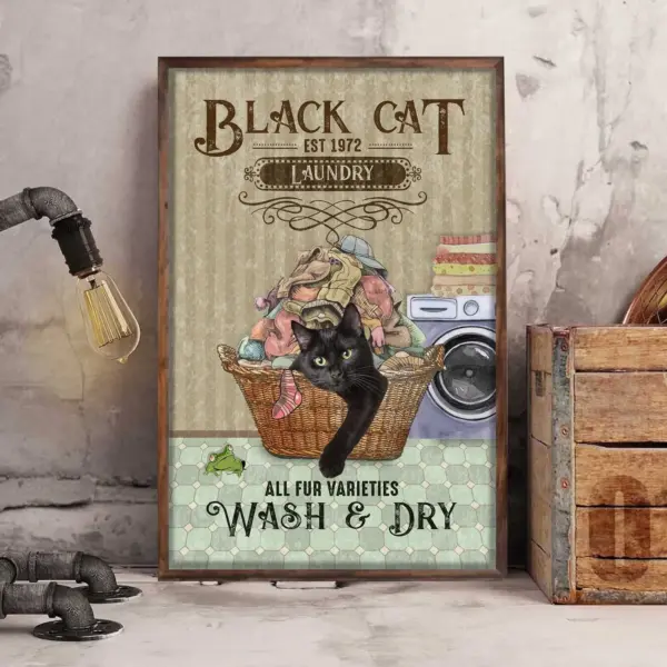 Black Cat Wash And Dry Laundry Poster Black Cat Art Print Clothes Basket Cat Lover Gift Laundry Room Decor Laundry Sign Cat Lover Gift