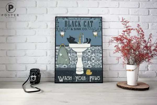 Black Cat Wash Your Paws Poster Cat Poster Print Wall Art Cat Lover Gift Wall Decoration Bathroom Poster Hanging Poster Best Gift Ever