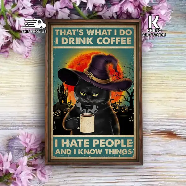 Black Cat Witch That S What I Do I Drink Coffee I Hate People I Know Things Poster Halloween Home Living Decor Poster