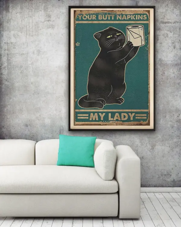 Black Cat Your Butt Napkins My Lady Funny Gifts Poster Wall Art Bathroom Wall Decor Bathroom Art Unframed Poster Funny Racoon Poster