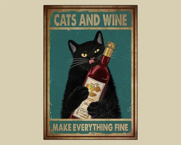 Black Cats Cat And Wine Make Everything Fine Animals Fan Lover Poster Art Print Wall House Office Decor For Home Living Room Bedroom
