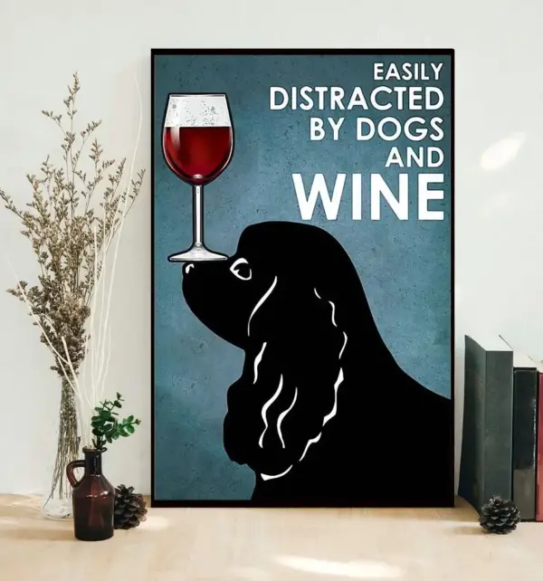 Black Cocker Easily Distracted By Dogs And Wine Poster