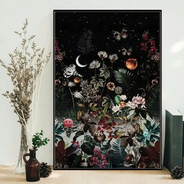 Black Floral With Moon Wall Art Flower Poster Black Poster Gift House Warming Giftt House Decor Giftbirthday Gift