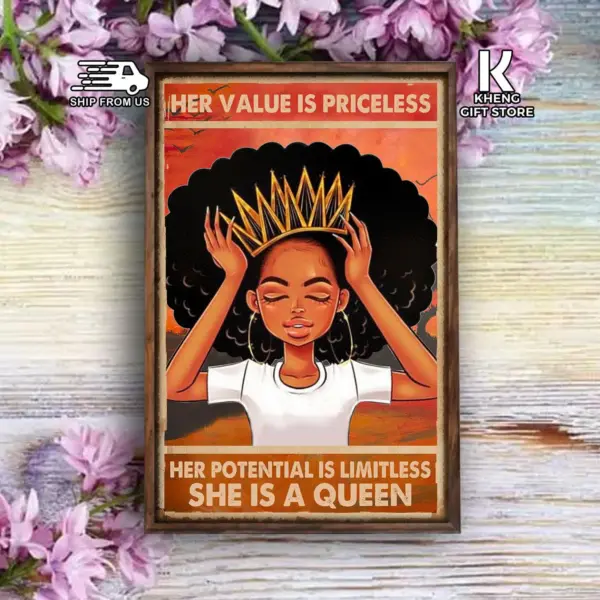 Black Girl Her Value Is Priceless Her Potential Is Limitless She Is A Queen Funny Poster Black Livers Matter Living Deco