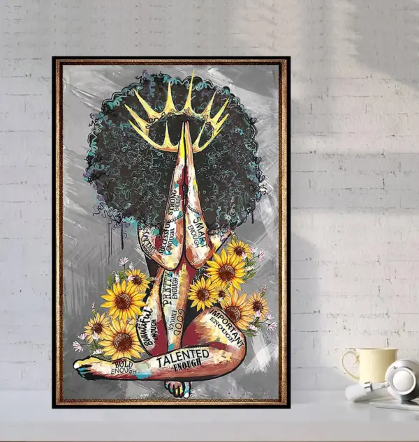 Black Queen Sunflower Poster - Black Girl Magic Art Print