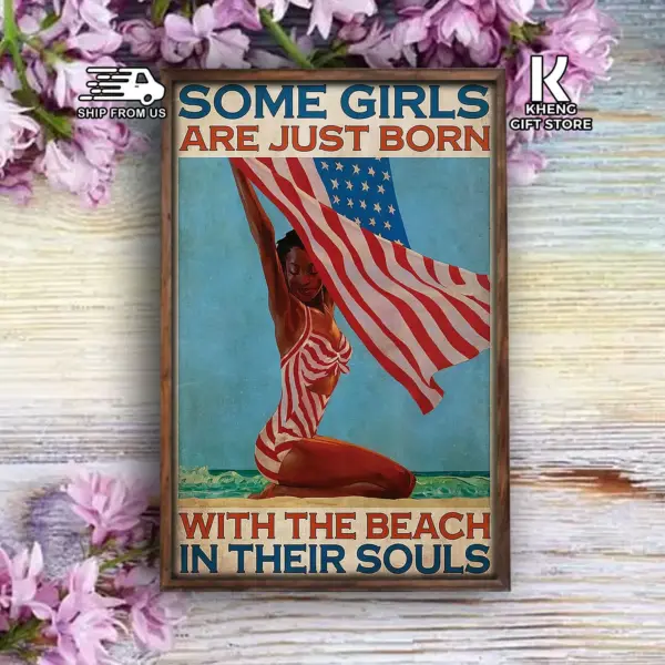 Black Girl Some Girls Are Just Born With The Beach Poster American Flag Black Lives Matter Living Decor Poster