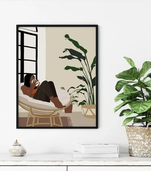 Black Girl With Coffee Poster Canvas Abstract Female Poster African Woman Art Modern Woman Wall Decor Coffee Lover Gift Boho Wall Art