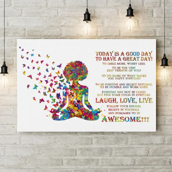 Black Girl Yoga Canvas Art Today Is A Good Day To Have A Great Day Poster Afro Girl Butterfly Wall Art African Woman Wall Decor