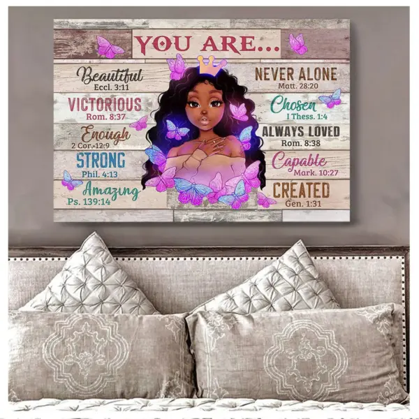 Black Girl You Are Beautiful Canvas Black Teenage Girl Poster African American Girl Print Melanin Girl Wall Art Black Pride Bible Verse