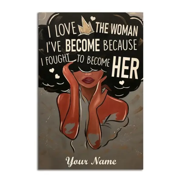 Black I Love The Woman I Ve Become Vertical Poster Woman Poster Afro Queen Portrait African American Woman Poster Feminism Vintage