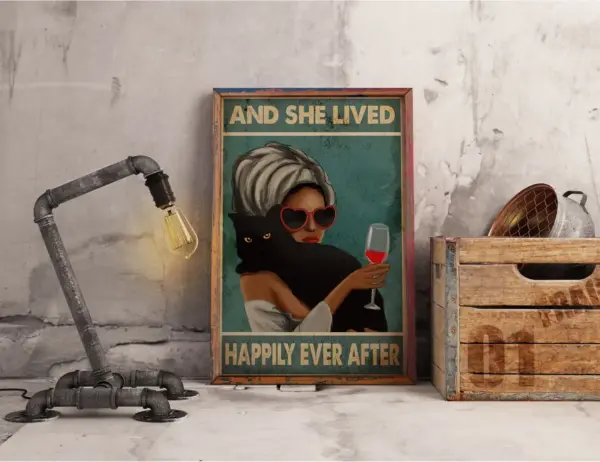 Vintage Cat Poster - Black Lady with Wine Glass - Cute Cat Wall Art