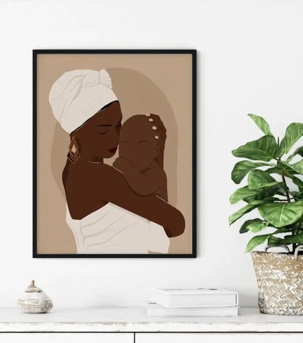 Black Mom Holding Baby Poster Black Mother Son Wall Art Black Family Canvas Black Mom Proud Black Mom And Son Art Decor Boho Wall Art